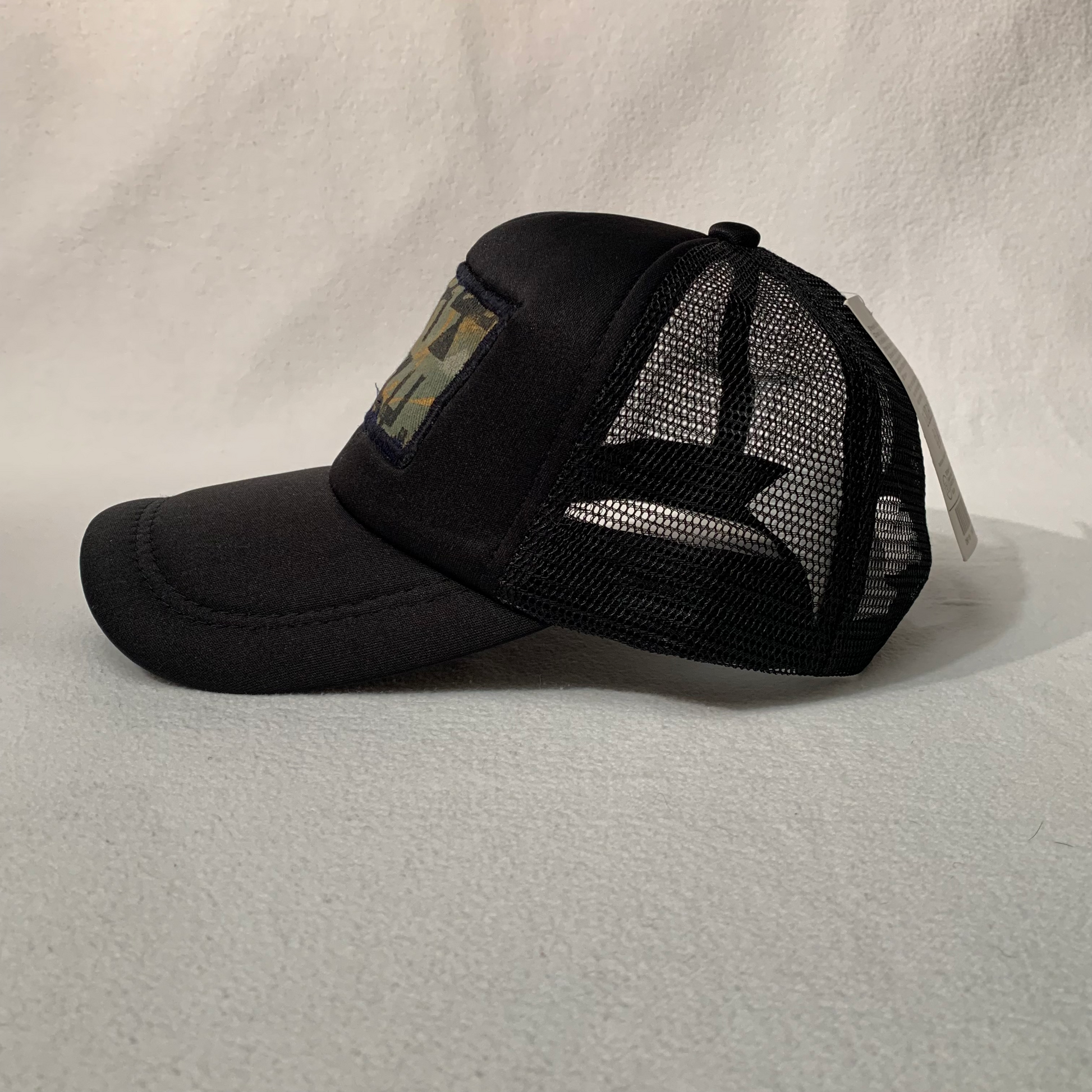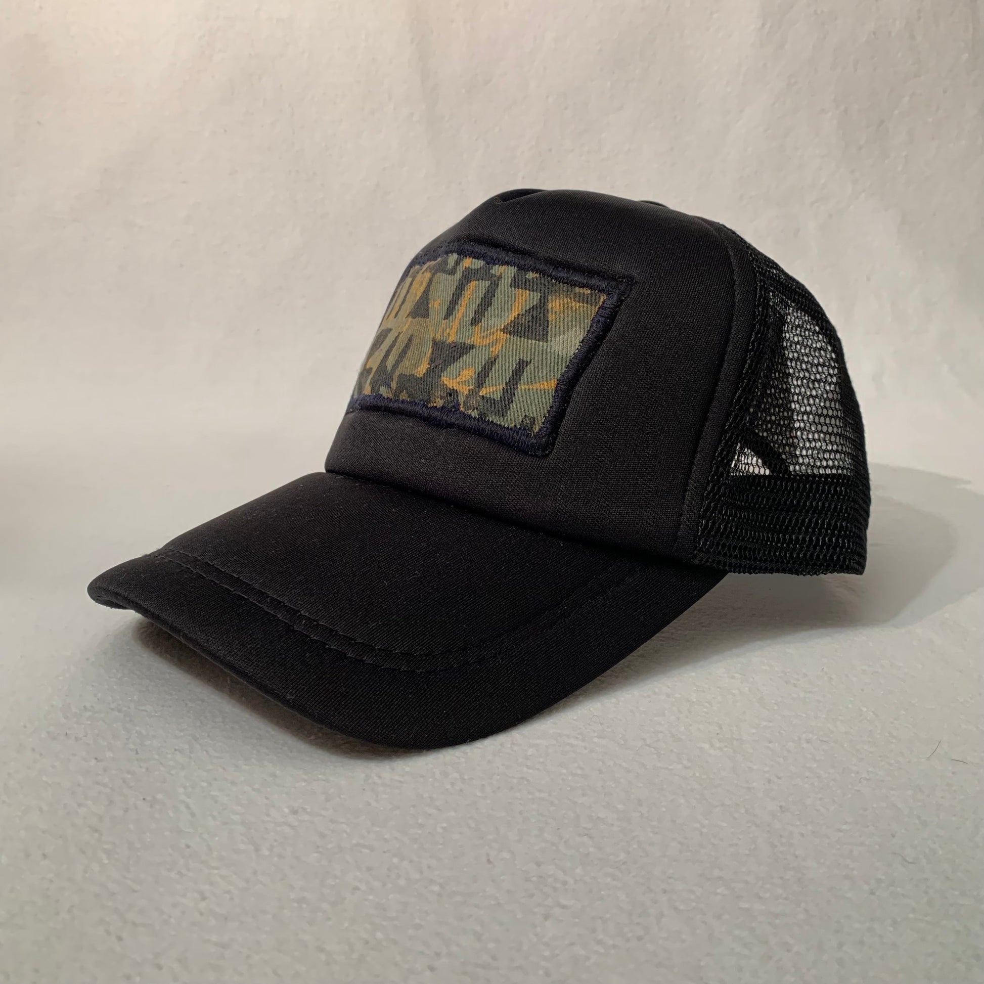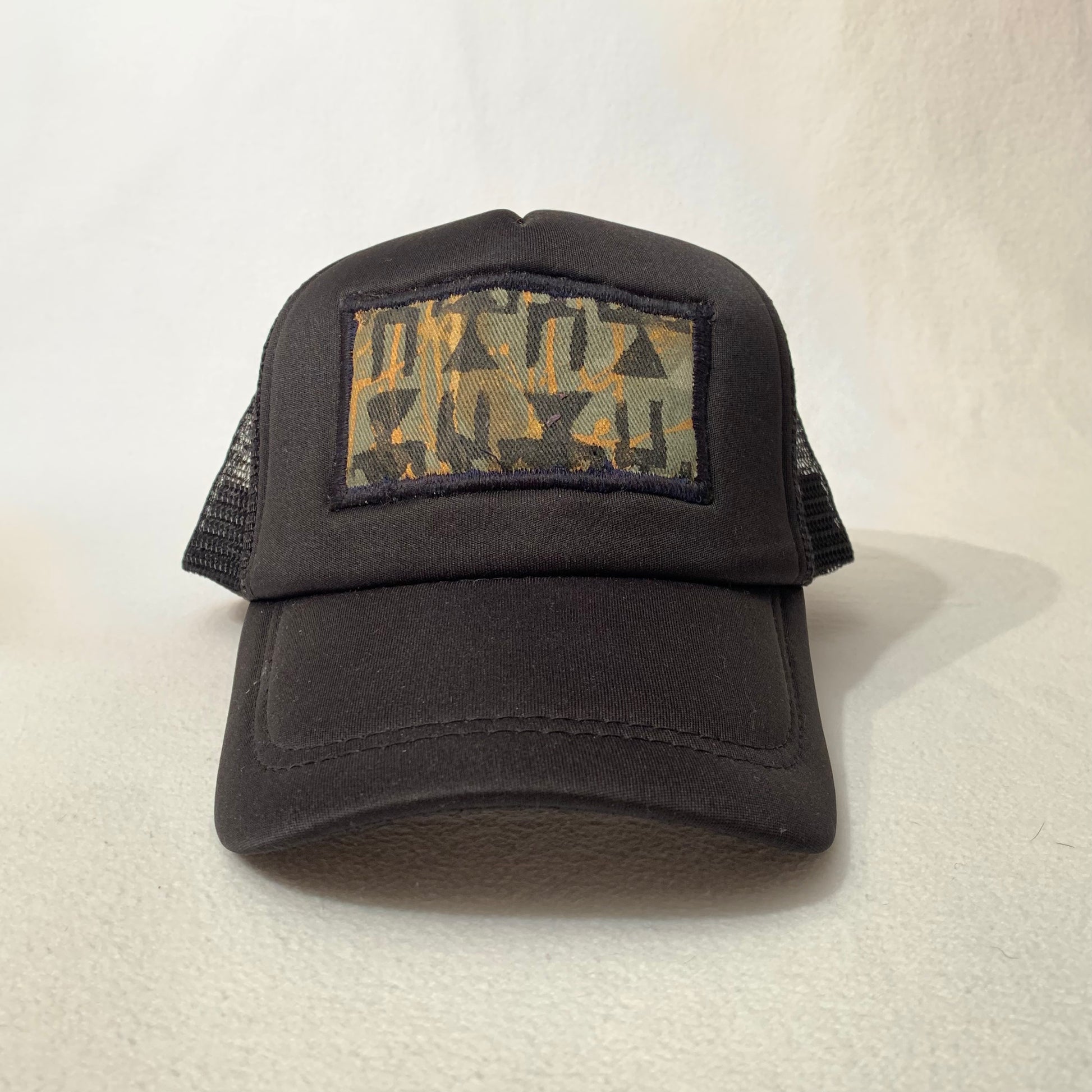 Hand painted and sewn onto a breathable trucker cap. One size fits most.