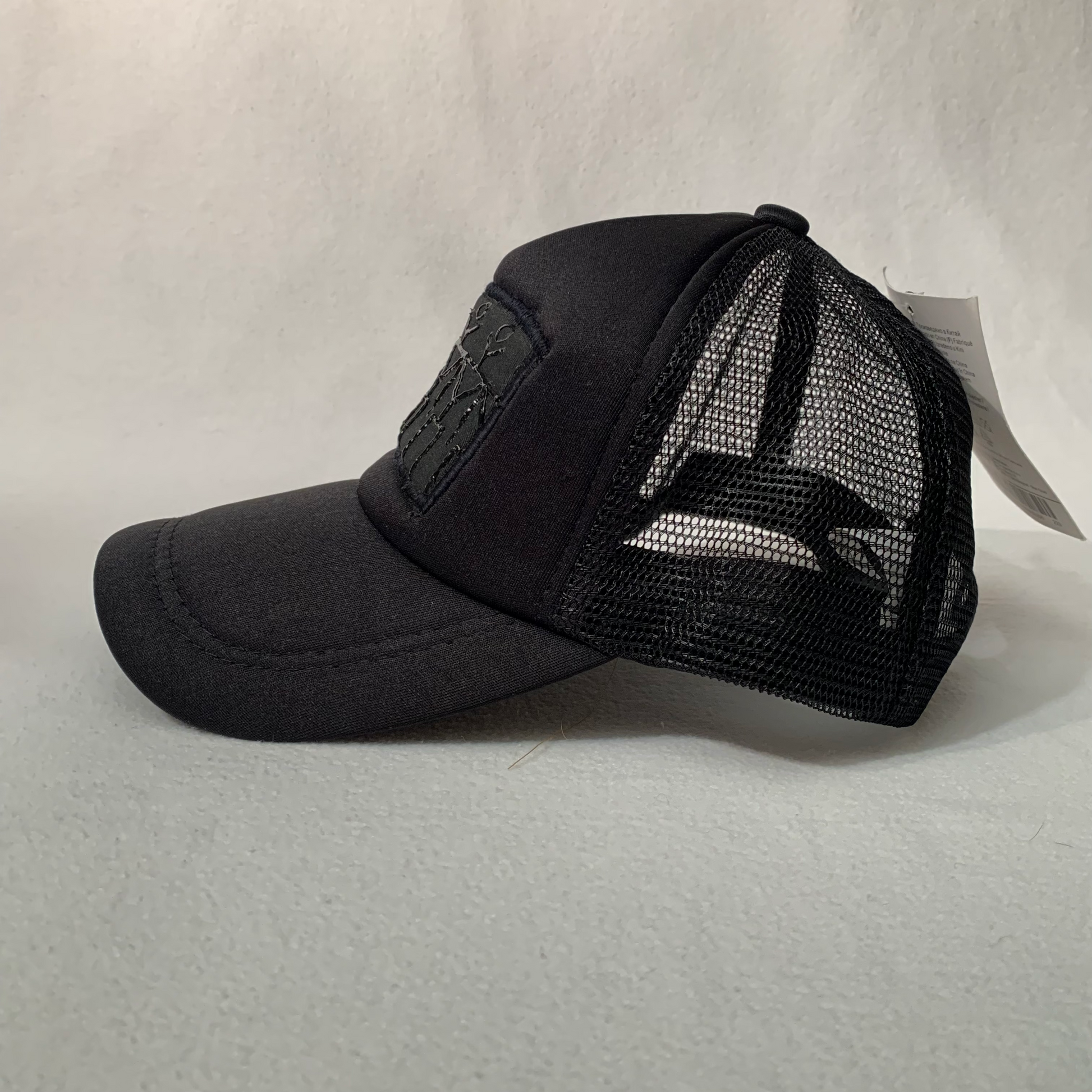 Hand painted and sewn onto a breathable trucker cap. One size fits most.