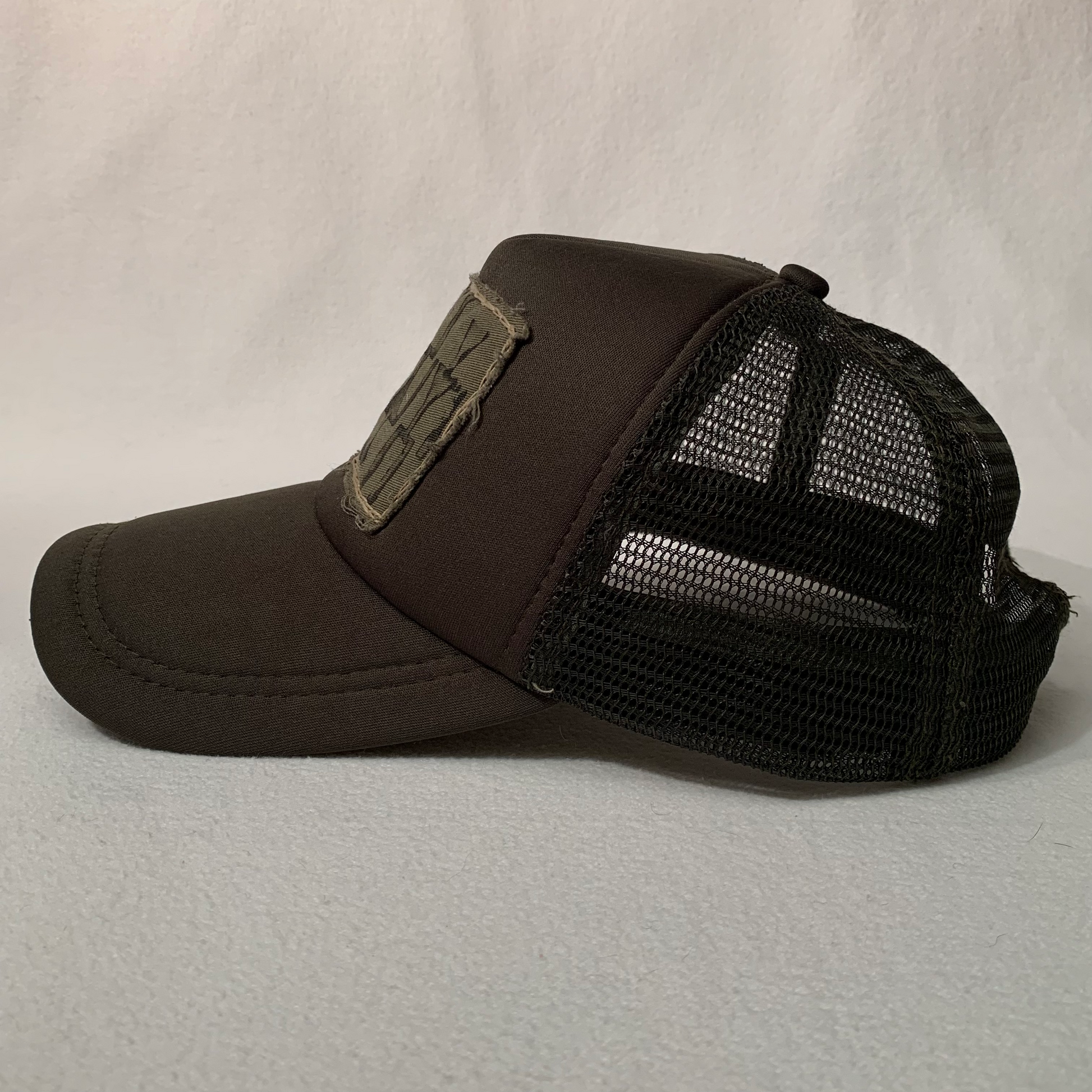 Hand painted and sewn onto a breathable trucker cap. One size fits most.